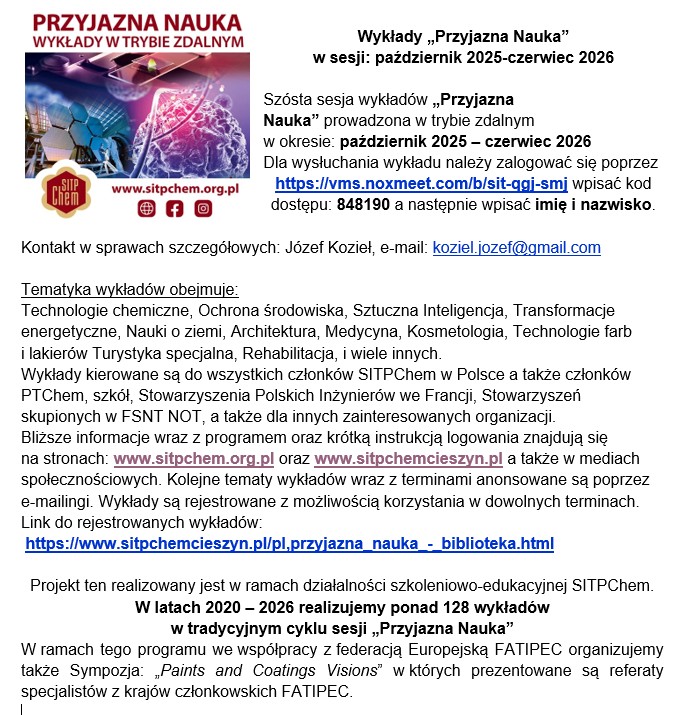 Stowarzyszenie Inżynierów i Techników Przemysłu Chemicznego SITPChem Oddział w Cieszynie 43-400 Cieszyn, ul. Rynek 12